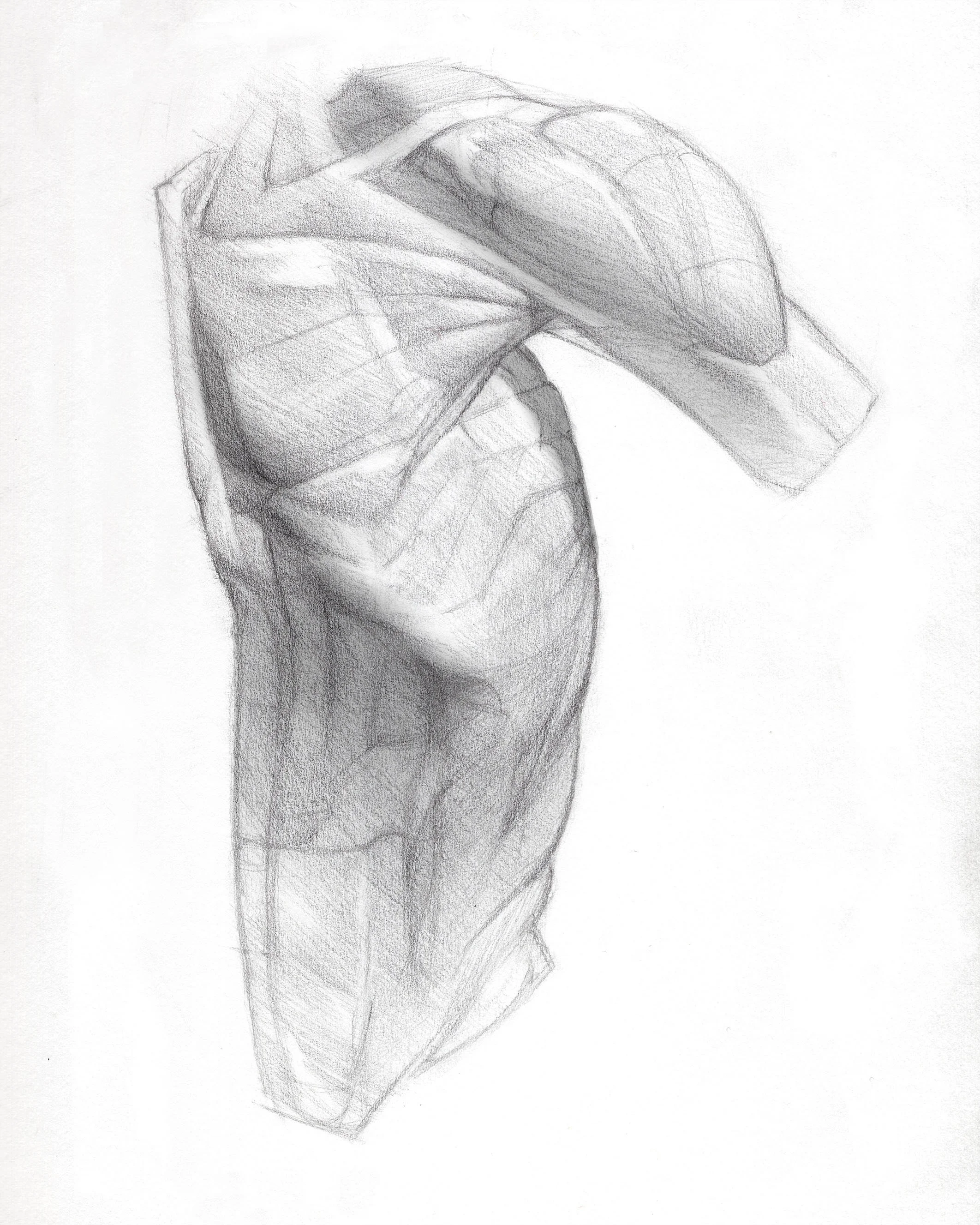 A study on a male torso showcasing the 2:1 relationship between the humerus and scapula.